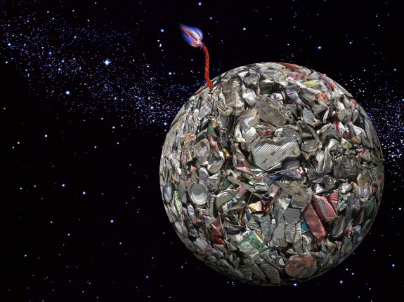 Burning fuse on garbage planet in outer space